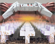 As bandas são as seguintes: Metallica (foto), com Master of Puppets, Sex Pistols, com Never Mind the Bollocks, Led Zeppelin, com Led Zeppelin 1, Elvis Presley, miniatura de Jailhouse Rock e Blue Hawaii e Jimi Hendrix, com Are You Experienced.